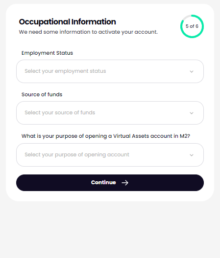 8. Preencha suas informações profissionais: Muitos exchanges agora exigem informações ocupacionais para acessar seus serviços. Digite essas informações para continuar.