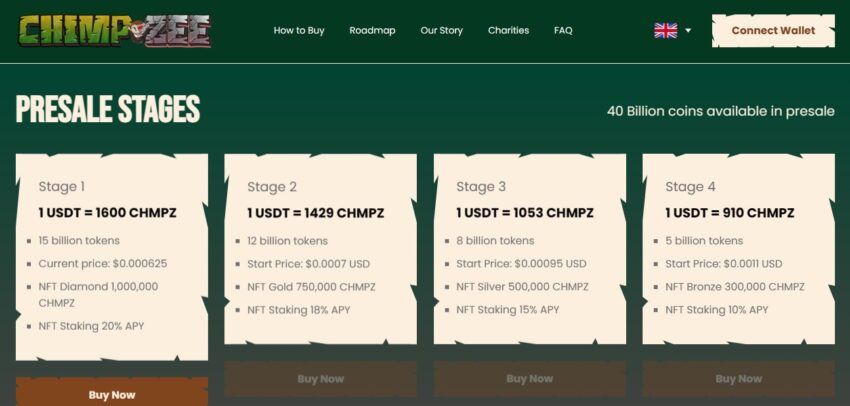 Um recém-chegado ao universo das criptomoedas, a Chimpzee (CHMPZ) visa causar um impacto positivo no meio ambiente. Atualmente, em sua fase de pré-venda, 1 USDT comprará 1.600 CHMPZ.