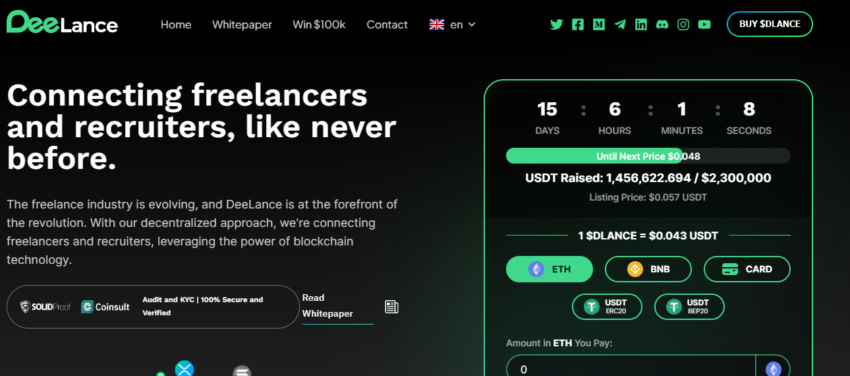 O DeeLance é uma plataforma de recrutamento web3 que visa transformar o cenário de contratação de freelancers. A plataforma utiliza um sistema de pagamento baseado em criptomoedas e contas de garantia habilitadas para contratos inteligentes para garantir a segurança de clientes e freelancers, minimizando o risco de perdas financeiras.
