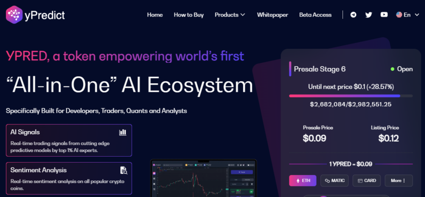Em 30 de junho de 2023, a altcoin YPRED está na sexta fase de pré-venda de tokens. O preço é de US$ 0,09, com o preço de listagem definido em US$ 0,12.