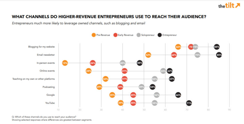 Newsletters tendem a converter leads melhor do que muitos outros métodos de conversão de leads, incluindo mídias sociais. Isso significa que eles são uma boa estratégia para obter receita consistente, especialmente durante as desacelerações do mercado e os mercados de baixa. De acordo com a pesquisa do The Tilt, cerca de 75% dos empresários com maiores ganhos usam e-mail em sua distribuição de conteúdo.