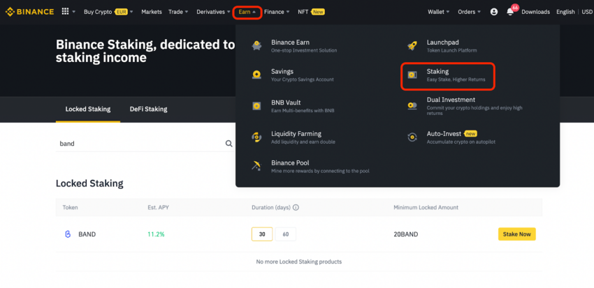 Então, como você faz staking de tokens BAND? A maneira mais fácil de fazer staking de tokens BAND é usar a Binance Staking.