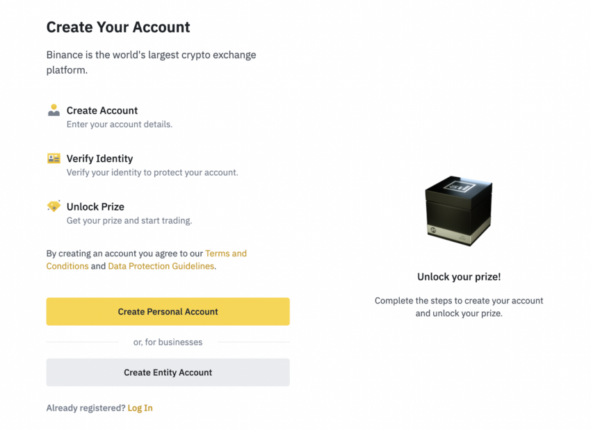 Configurar uma conta na Binance é fácil e requer apenas alguns cliques. Clique em Cadastrar e insira todas as informações necessárias.