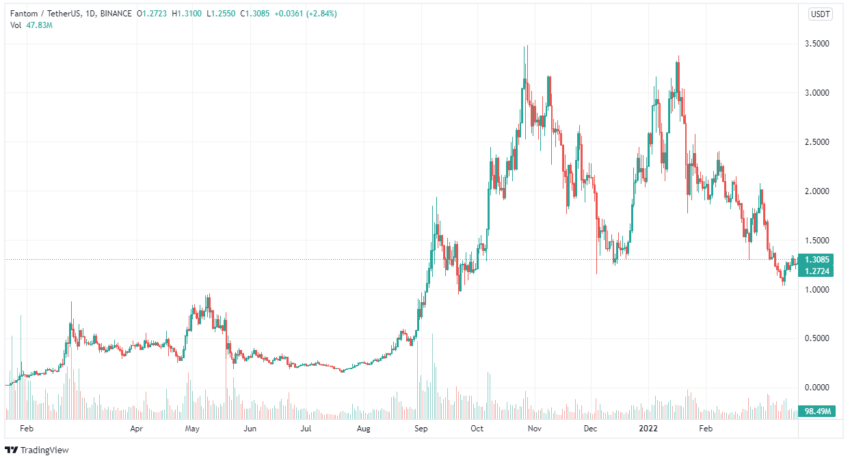 O preço dos tokens FTM vem caindo desde que atingiu uma alta de quase US$ 3,41 no início de janeiro. Desde então, atingiu um mínimo de US$ 1,07 em meados de março. Isso resultou em uma nova baixa anual após a notável baixa registrada no final de 2021 em US$ 1,14.