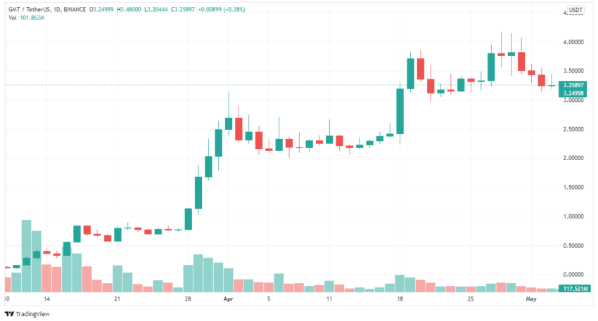 GMT, ou Green Metaverse Token, é o token nativo do projeto STEPN. Tem uma oferta limitada de seis bilhões de tokens. Ele é usado para governança, mas também é necessário no jogo para atualizações após um certo nível. Os tokens GST e GMT podem ser trocados por outras moedas em exchanges de criptomoedas após atingir o nível 30.