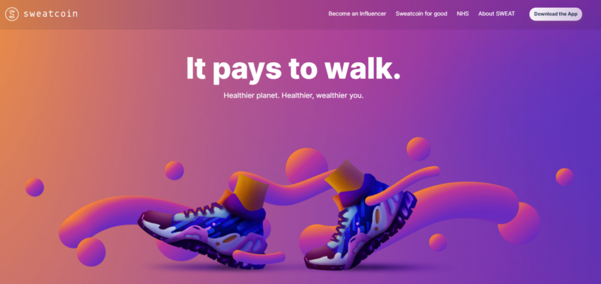 O Sweatcoin é uma empresa sediada no Reino Unido. O aplicativo deles rastreia seus passos e o recompensa com Sweatcoins. O aplicativo afirma que os usuários são 20% mais ativos após apenas seis meses de uso. É um método para incentivar o movimento físico e um novo modelo para administrar uma empresa de criptomoedas.
