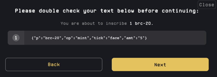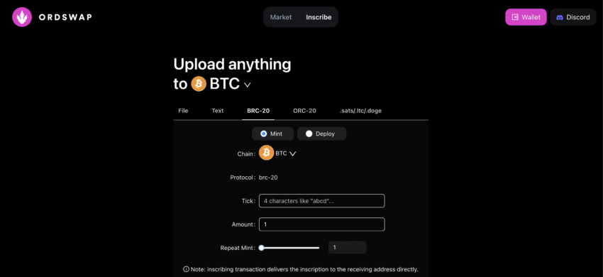 No entanto, se a carteira ou mercado que ajuda na cunhagem e inscrição mencionar o seguinte de antemão, basta fornecer seu endereço para obter o token BRC-20 recém-cunhado.