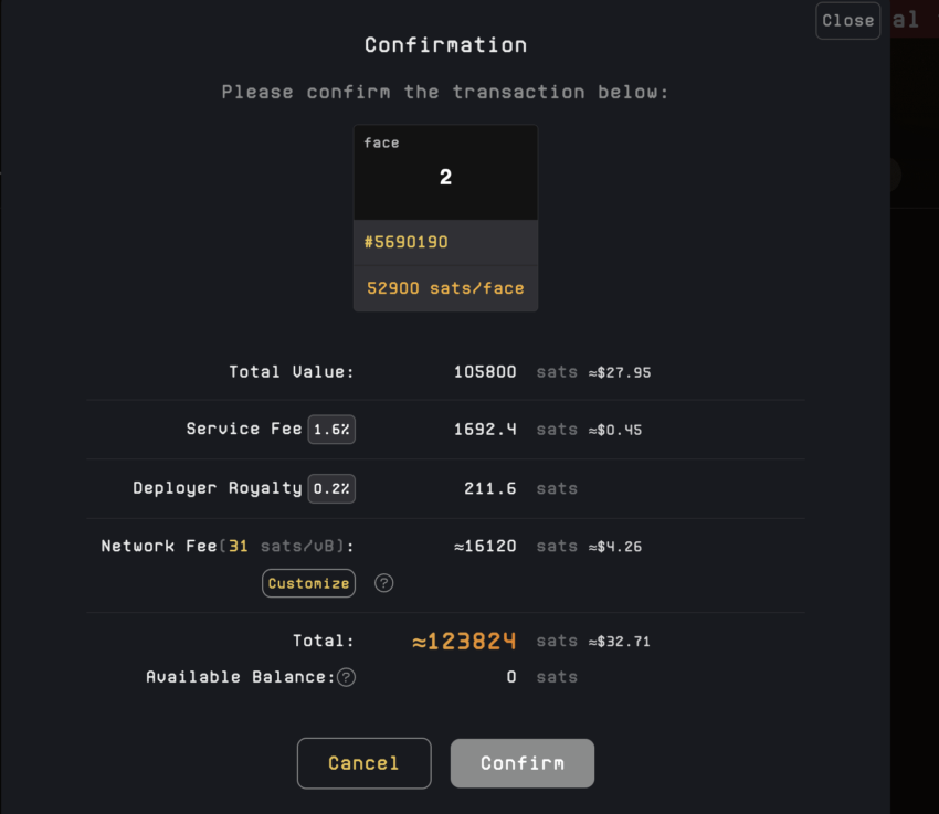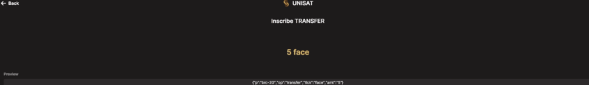 No UniSat, ele será cunhado diretamente no seu endereço. Depois de finalizar a seção, você será direcionado para a seção de verificação de endereço e uma seção de confirmação de taxa. Ao confirmar, você deve ter cinco tokens de rosto cunhados em seu endereço.