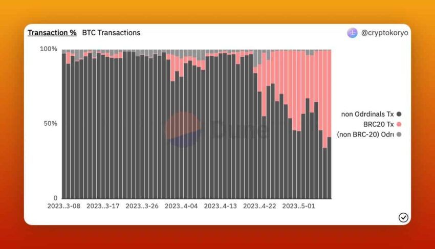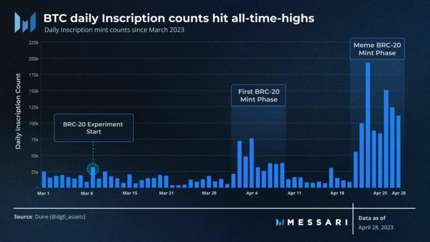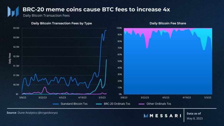 - Tokens BRC-20 usando o protocolo Ordinals ainda se inscrevem em sats individualmente. Portanto, as transações BRC-20 semelhantes a poeira estão se acumulando constantemente na rede, levando ao congestionamento da rede.