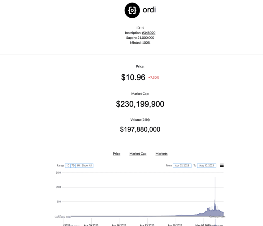 Vamos levar em consideração o ORDI, o primeiro token BRC-20.