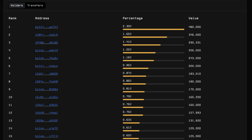 Com UniSat – uma carteira compatível com BRC-20 – você também pode rastrear a distribuição específica do endereço.