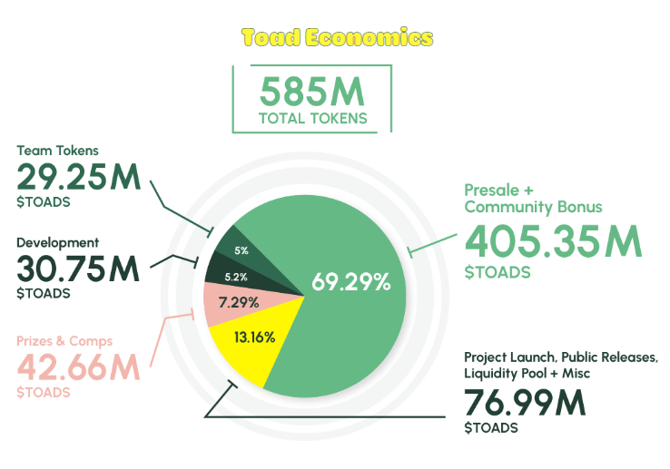 Há 585 milhões de $TOAD no total. Será distribuído da seguinte forma: