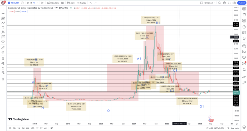 Isso também confirma o fato de que o preço da ADA em 2023 pode não cair abaixo de US$ 0,244 — o nível de O1.