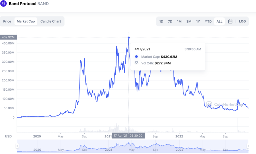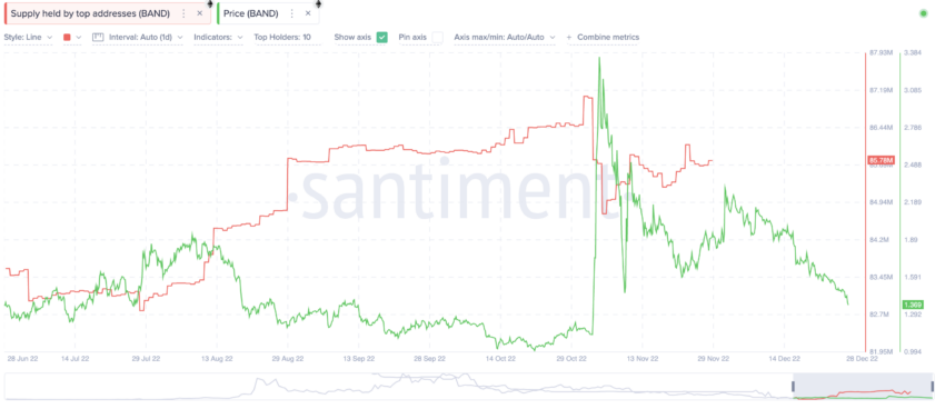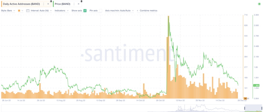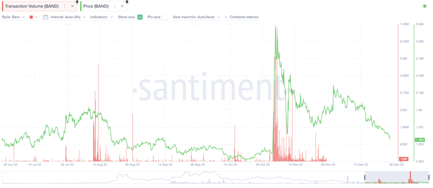 No nível atual, em 28 de dezembro de 2022, o volume negociado é de US$ 14,81 milhões e o valor de mercado é de US$ 48,25 milhões. O índice de rotatividade usando esses valores chega a 0,30. Portanto, o BAND é atualmente mais volátil do que em seus níveis de pico. É por isso que é necessário que qualquer ativo digital tenha volumes de negociação.