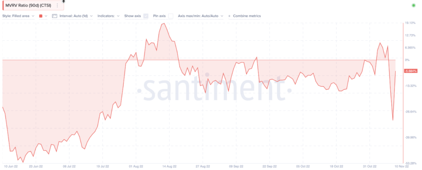 Observe que o MVRV do CTSI estava tão baixo em junho de 2022, e uma pequena recuperação se seguiu.