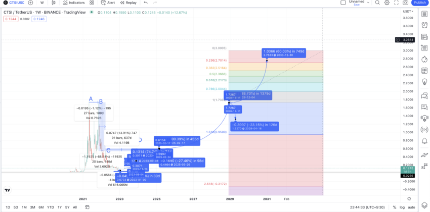 Espera-se que todos os tokens sejam desbloqueados até o final de 2027. Portanto, a previsão do preço do CTSI após 2027 deve mostrar mais força.
