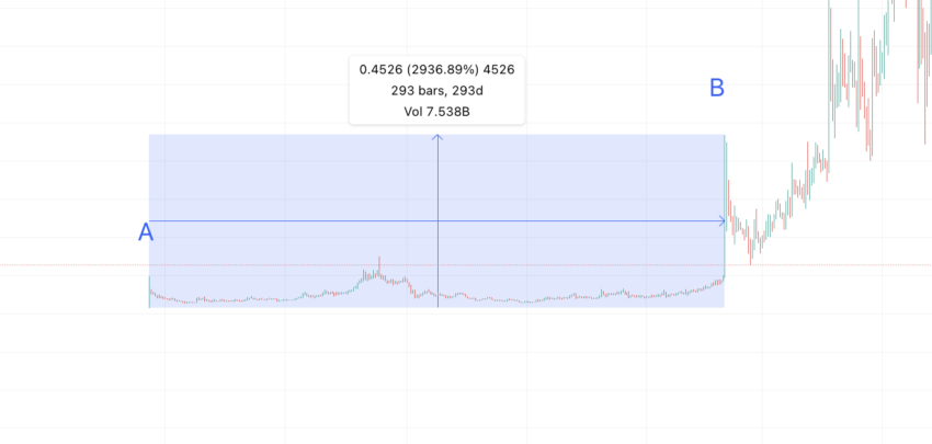A para B levou 293 dias e um crescimento de 2.936,89%.