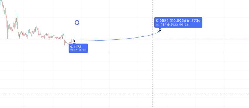 Isso resulta em 74 dias e 74,19%. Ao traçar um caminho, isso resulta em US$ 0,3071. A trajetória mostra alta em dezembro de 2023. Porém, se as condições do mercado continuarem pessimistas, pode ser em 2024.