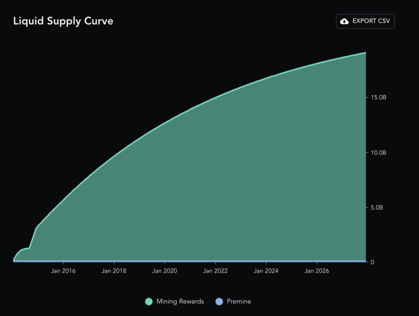 Aqui está a curva de oferta com o substrato como alocação pré-mineração. Observe que todas as outras moedas estão relacionadas às recompensas de mineração.