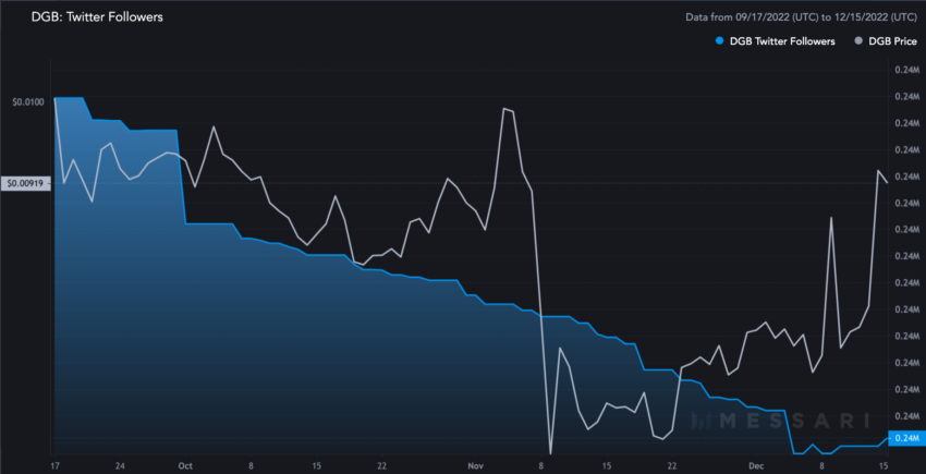 Preços DigiByte (DGB) e crescimento social