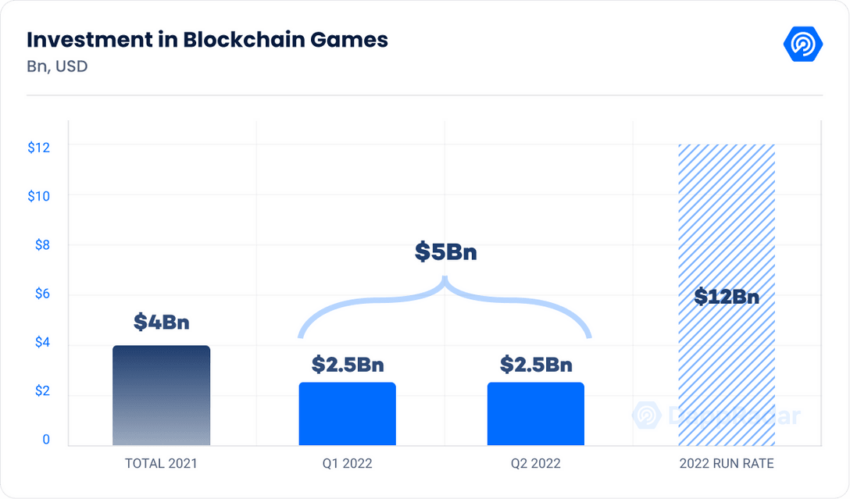 Finalmente, em maio de 2022, a Blockchain Games viu um fluxo de investimento de 5 bilhões, já superando a cifra de US$ 4 bilhões em 2021.