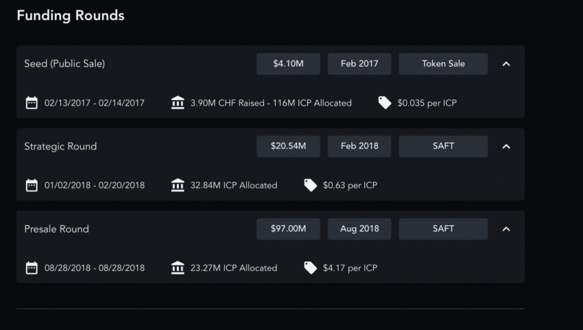 Aqui está como as três rodadas de financiamento foram para o ICP: