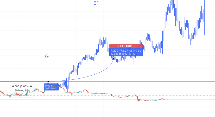 Em G, algo interessante acontece. Observe que F e G estão nos mesmos níveis, em termos de preço. Assim, podemos assumir que G é o ponto de partida para um novo padrão como ICP que segue o mesmo caminho de F para A. FEDCBA. Considere G como F do padrão anterior.