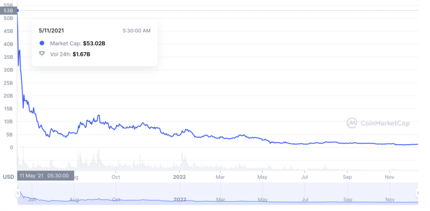 Valor máximo de mercado da ICP: US$ 53,02 bilhões em 11 de maio de 2021.