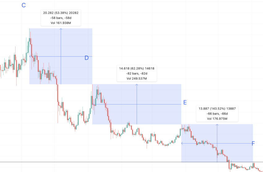 Agora, para preparar um modelo de previsão de preços ICP de 2023 a 2035, primeiro precisamos plotar os pontos do primeiro padrão, F a A.