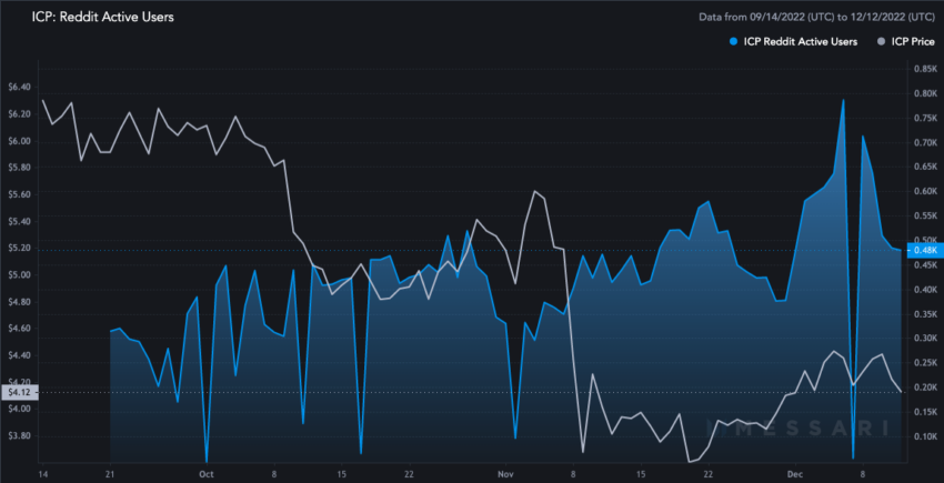 Além disso, apesar da queda de preço no início de novembro, o ICP está experimentando um crescimento constante no número de usuários ativos do Reddit. Isso provavelmente se deve ao colapso do FTX.