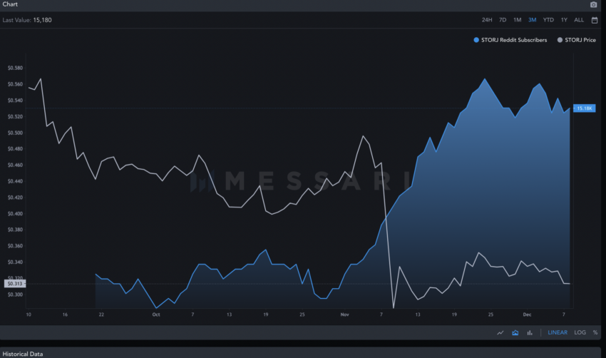 O Storj viu um aumento no número de assinantes do Reddit no quarto trimestre de 2022. Isso ocorreu apesar de uma queda cataclísmica de preços no início de novembro.