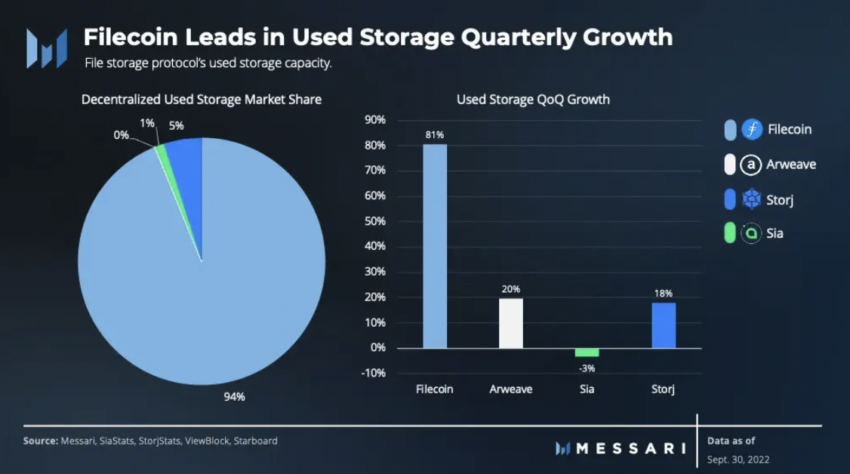 Chegando ao crescimento do setor de storage como serviço, o Storj tem 18% de market share, atrás apenas da Filecoin.