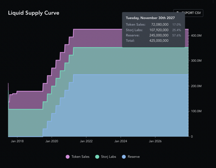 72 milhões de tokens STORJ foram para investidores de varejo, ajudando a Storj a arrecadar US$ 30 milhões . Além disso, Storj queimou 75 milhões de tokens, colocando o fornecimento total em 425 milhões . Atualmente, 415 milhões de tokens STORJ já estão em circulação.