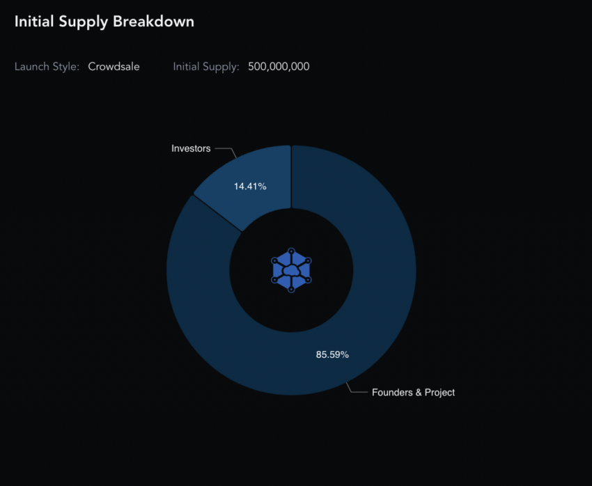 A cunhagem inaugural viu 500 milhões de STORJ na blockchain Ethereum . Inicialmente, 85,59% dos tokens foram transferidos para os projetos e fundadores após a venda coletiva. Apenas 14,41% foram para investidores de varejo.