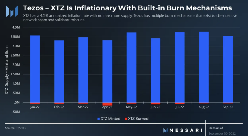 A blockchain do Tezos também possui um mecanismo de queima de token. No entanto, isso é relativamente lento e incapaz de compensar a taxa de emissão geral até agora.