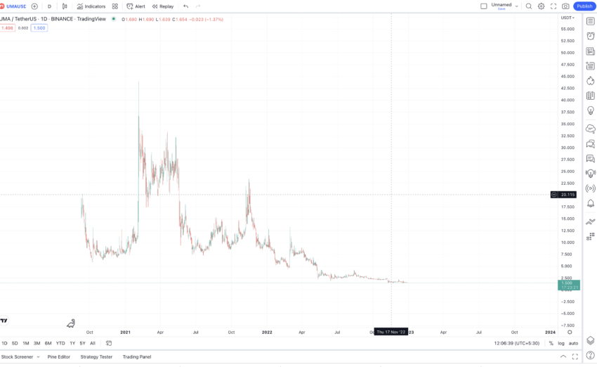 Esta pode ser a referência de preço para o modelo de previsão de preço UMA 2024. O preço mínimo da UMA no final de 2023 ou início de 2024 pode chegar a US$ 1,499. Isso se alinha com uma forte zona de suporte. A alta em 2024 pode, portanto, ser de 355,43% do M ou de US$ 1,499.