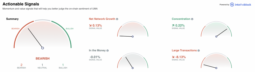 A plataforma analítica Intotheblock mostra que o sinal geral para UMA é de baixa, seguido por crescimento negativo da rede.