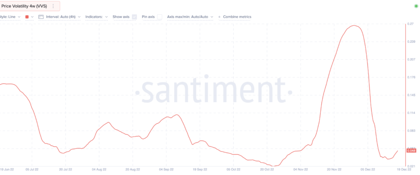 Existem sinais preocupantes para traders e investidores de curto prazo nas métricas on-chain. Nos últimos 30 dias, os tokens VVS mostraram maior volatilidade em comparação com os meses anteriores. Mesmo que isso esteja caindo desde o início de dezembro, as preocupações com a volatilidade de novembro podem ressurgir, especialmente porque todo o mercado de criptomoedas está volátil.