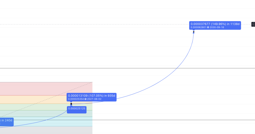 Portanto, o preço máximo do financiamento da VVS em 2030 pode chegar a US$ 0,0000628, ultrapassando sua alta do gráfico de US$ 0,000043764.