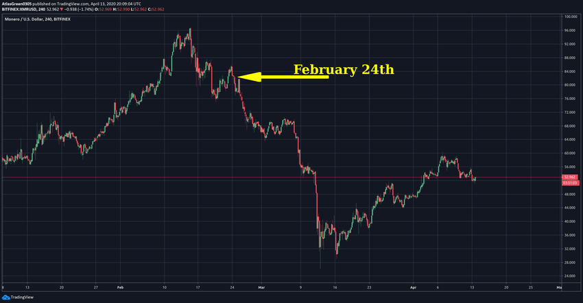 Contra o Bitcoin, o Monero inicialmente caiu 30%, mas desde então aumentou cerca de 26%.