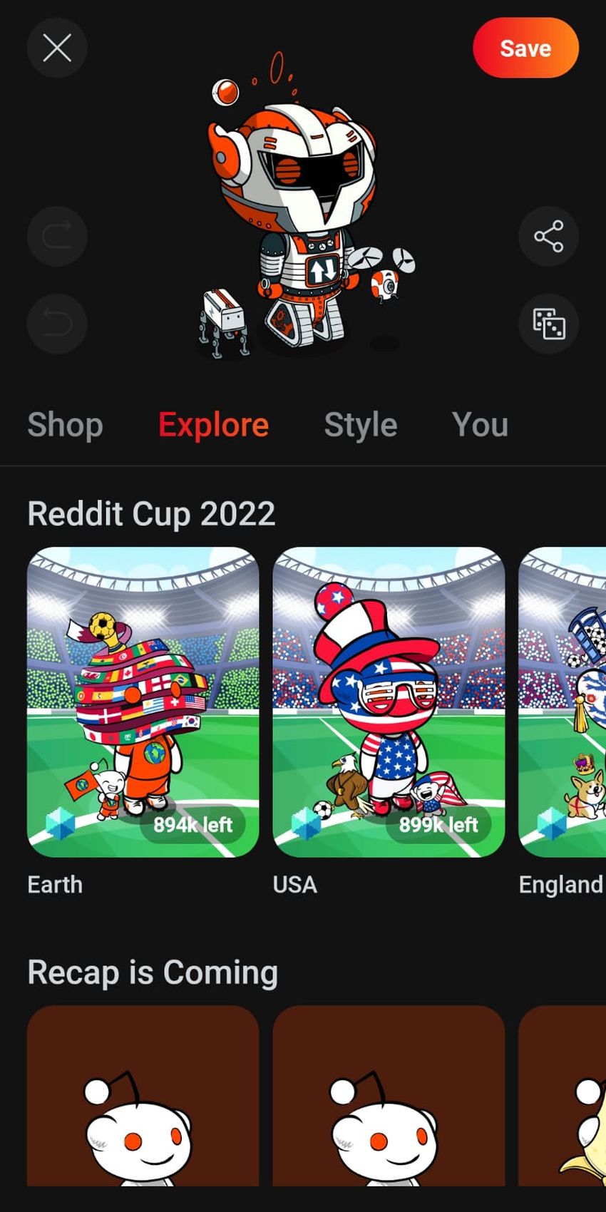 Passo 3: Clique na versão ampliada do avatar para ir para a página “avatares do Reddit”. Todos os avatares estão esgotados no mercado Avatar (neste momento). No entanto, você ainda verá diferentes seções de avatares. A seção superior geralmente apresenta a coleção mais recente disponível, atualmente a coleção “Reddit Cup 2022”.