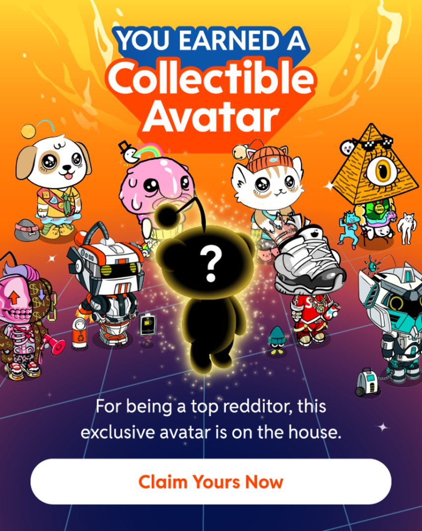 Dependendo da “pontuação do karma”, envolvimento da comunidade e outros fatores, os usuários do Reddit podem ser elegíveis para receber um avatar colecionável gratuito. Se você for elegível, receberá uma notificação informando-o. Você pode reivindicar seu avatar gratuito por meio de um banner semelhante à imagem abaixo.
