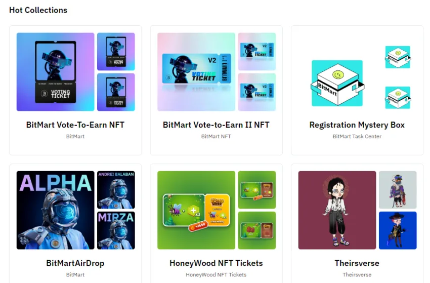 As ofertas NFT da BitMart são relativamente padronizadas, pois a plataforma permite aos usuários comprar, vender e transferir seus ativos digitais. Ocasionalmente, a plataforma oferece promoções e brindes atraentes.