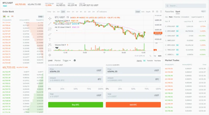 A BitMart tem um menu suspenso “Negociação” e “Futuros” na página inicial. Aqui, discutiremos todos os recursos de negociação que abrangem ambas as seções.