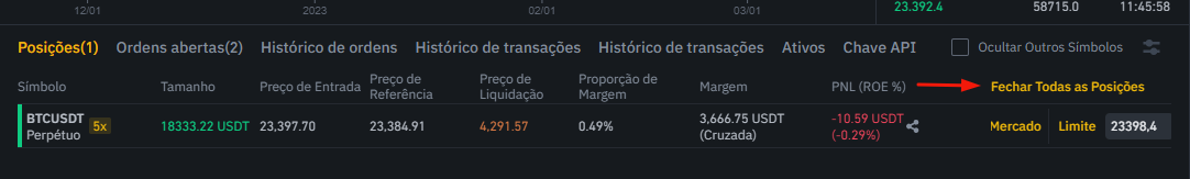 Se as informações parecerem um pouco confusas para você, logo abaixo do gráfico, a Binance te mostra as informações mais de uma forma mais simples. Além disso, a Binance também permite que você cancele o seu trading na hora que você quiser. Portanto, se você fez um trading e está no prejuízo, mas não quer esperar até a criptomoeda atingir o valor do stop loss, você pode clicar para “fechar sua posição”. Este recurso também pode ser usado se você estiver obtendo lucro e quer mudar o valor do seu stop loss.