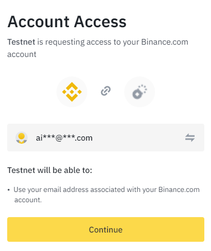 Após clicar em “trading simulado” você vai precisar autorizar o acesso à sua conta Binance. Clique em “Continue“.