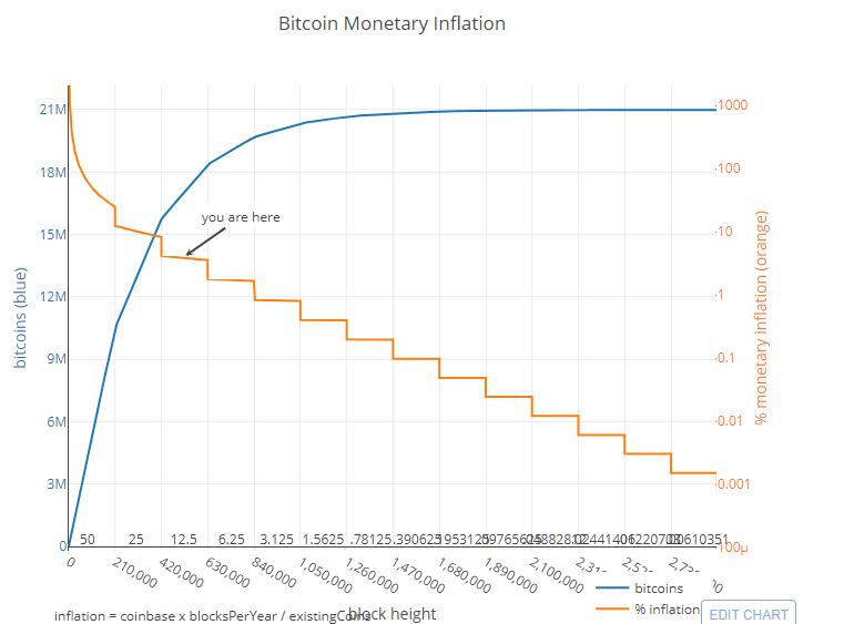 E de acordo com a inflação diária atual, 151 blocos são produzidos diariamente. Portanto, a fórmula de criação da linha do tempo é a seguinte: