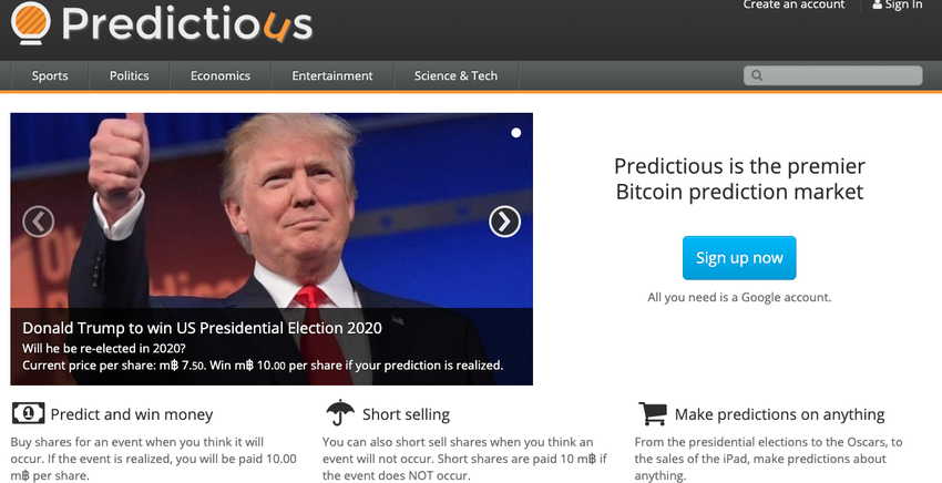 - Por fim, existem alguns mercados de previsões notáveis com os quais você pode se envolver hoje. Augur é uma das mais populares e conhecidas, mas existem muitas outras opções disponíveis, como Predictious e GNOSIS .