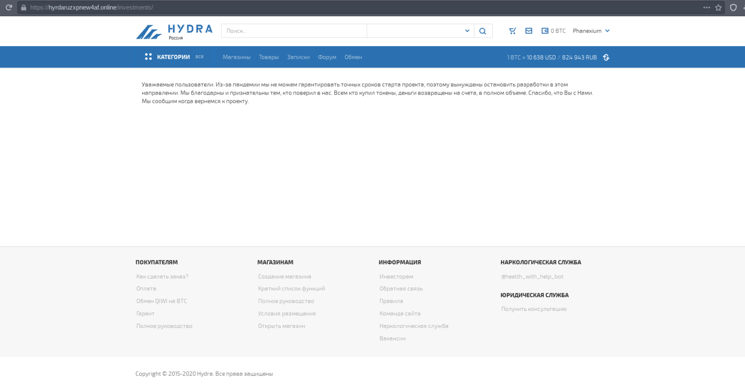 A Hydra teve que adiar a inicativa devido à pandemia. Dessa maneira, mais uma vez reforça a impressão de que a operação também tem todos os fundamentos de exit scam.