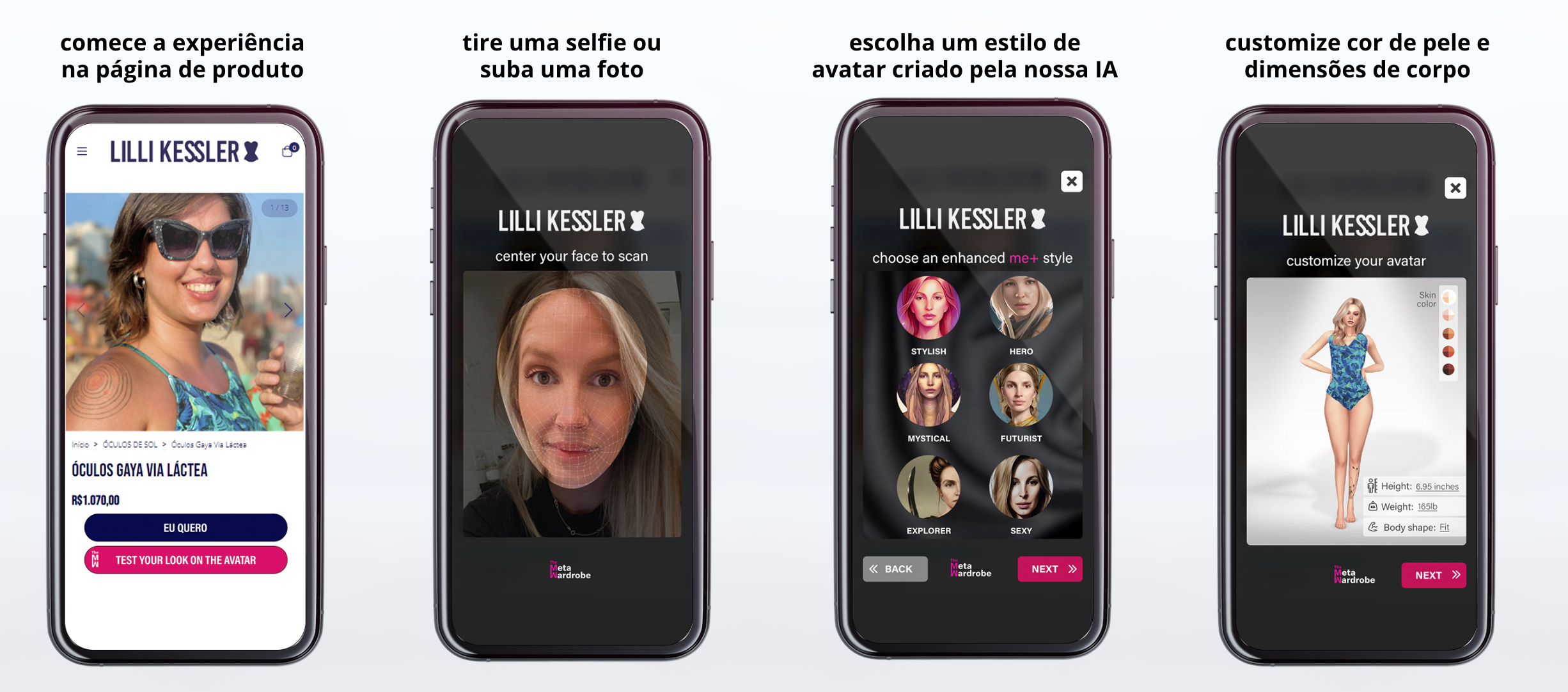 “A primeira é via um filtro de realidade aumentada no seu próprio corpo. A segunda é criar um avatar 3D personalizado a partir de uma foto do usuário, que ainda pode inserir altura, peso e tom de pele”, explica Ian Borges, co-fundador e CEO da metaKosmos.